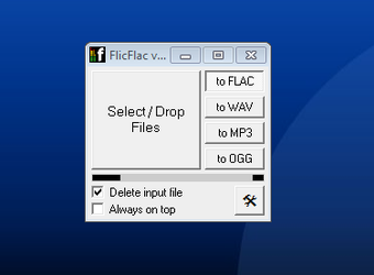 O FlicFlac converte para FLAC, WAV, MP3 e OGG. Você clica no formato que quer usar e arrasta para o quadrado com o texto “Select / Drop Files” os arquivos correspondentes.